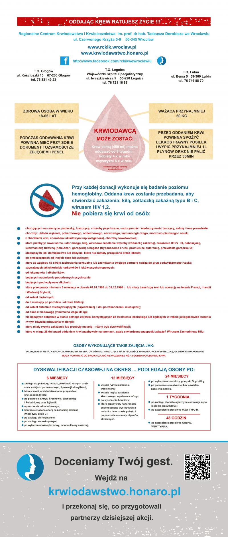 i Lubinie. Należy do największych jednostek służby krwi w Polsce pozyskujących krew i jej składniki w ramach poboru stacjonarnego i wyjazdowych akcji na rzecz ratowania zdrowia i życia pacjentów kilkudziesięciu szpitali i klinik Dolnego Śląska.