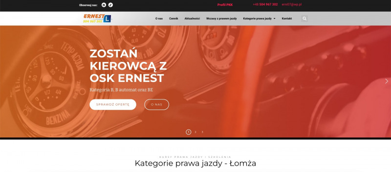OSK Ernest to znana szkoła jazdy w Łomży oferująca kompleksowe szkolenia dla przyszłych kierowców. Nasze kursy dostosowane są do potrzeb różnych uczniów, a doświadczony zespół instruktorów zapewnia wysoką jakość nauczania. W naszej szkole jazdy stawiamy na praktykę, dlatego zajęcia odbywają się w różnych warunkach drogowych, co pozwala zdobyć cenne doświadczenie. Po zakończeniu kursu nasi absolwenci czują się pewnie na drodze, a ich sukcesy są najlepszym dowodem na skuteczność naszej metodyki. Skorzystaj z naszych usług i sprawdź sam – Zapraszamy do kontaktu: