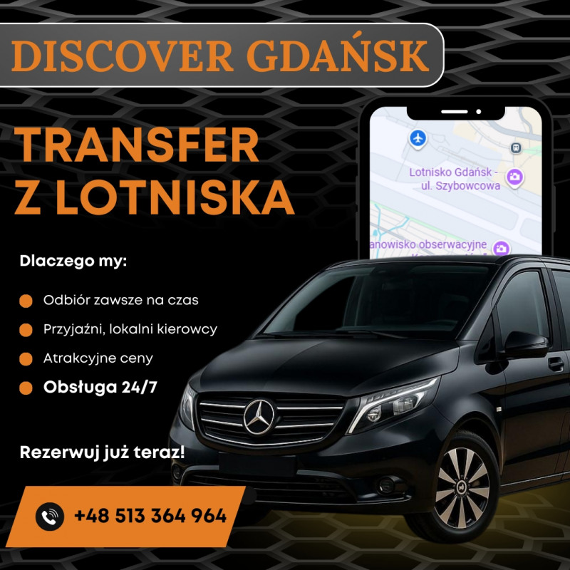 Discover Gdańsk to specjalistyczna firma transportowa oferująca premium transfery z lotniska Gdańsk (GDN) do hoteli i apartamentów w Gdańsku, Sopocie, Gdyni oraz innych miastach w Polsce. Zajmujemy się wyłącznie prywatnym przewozem osób – od indywidualnych pasażerów, przez rodziny, po małe grupy i klientów biznesowych. Obsługę realizujemy komfortowymi vanami Mercedes V-Class i Vito, mieszczącymi do 7 osób, z klimatyzacją i dużą przestrzenią na bagaż. Oferujemy: transfer lotnisko Gdańsk → centrum, taxi Gdańsk lotnisko → Sopot i Gdynia, transfery do Malborka, Torunia, Bydgoszczy, Warszawy, a także przejazdy business & VIP oraz usługę private driver Gdańsk. Nasi kierowcy mówią po angielsku, monitorują loty, odbierają klientów z hali przylotów (Meet & Greet) i dbają o bezpieczną, punktualną podróż door-to-door. Pracujemy 24/7, w stałych cenach, bez ukrytych opłat i bez konieczności przedpłaty – płatność po zakończonym przejeździe. Discover Gdańsk to idealny wybór dla osób szukających niezawodnego, wygodnego i profesjonalnego transportu z lotniska Gdańsk.